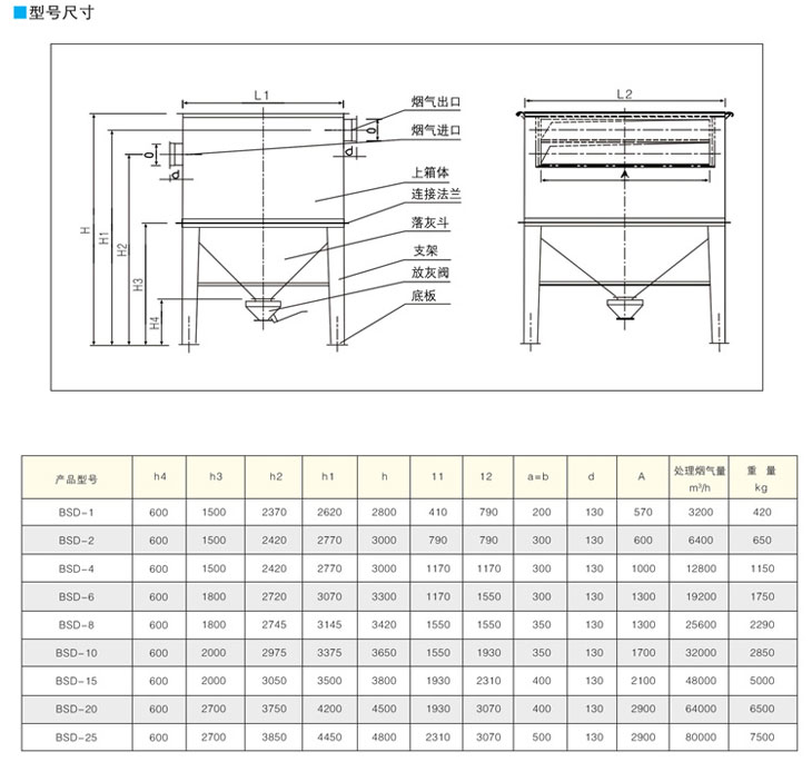陶瓷多管除塵器主要技術參數