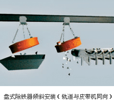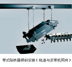 懸掛安裝方式分傾斜、水平兩種,它們均與除鐵器定位在輸料帶的某個位置工作有關。